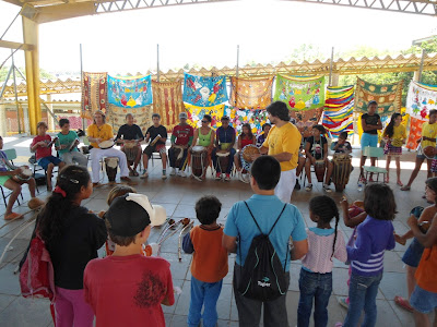 Neste último sábado, 5 de Novembro, ocorreu a formação sobre cultura afro-brasileira, ministrada aos presentes pelo professor Matheus e pela professora Gilsane. Nossos mestres esbanjaram competência, conhecimento e experiência no assunto. Além de muita informação, rolaram muitos debates sobre as formas de inserção pedagógica que o tema obrigatoriamente tem que ter nas escolas. Houve também o oferecimento de comida típica, uma bela decoração e até uma mini-oficina de ritmos e canções de origem africana. Quem compareceu não se arrependeu e pediu mais. Isso foi só um ensaio.